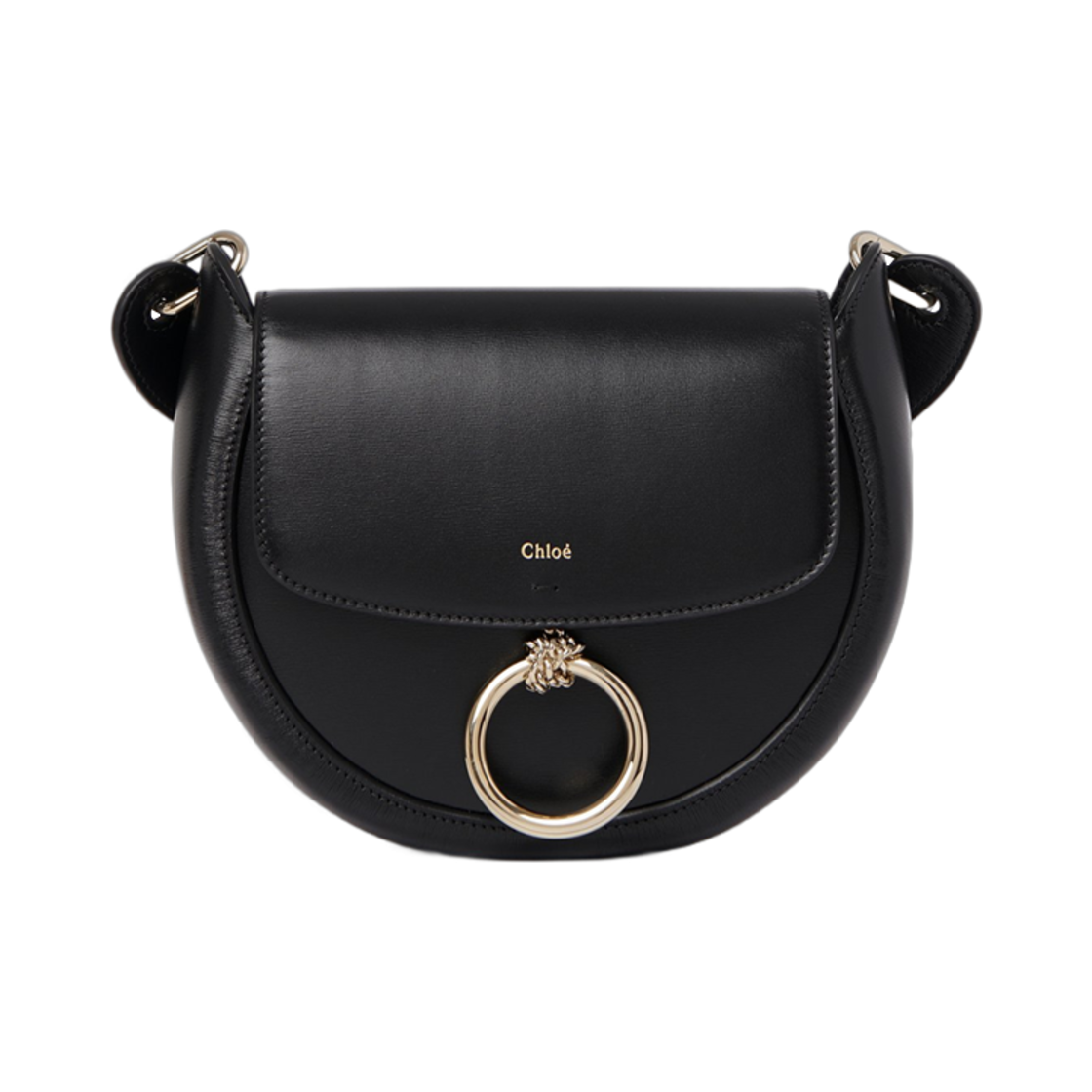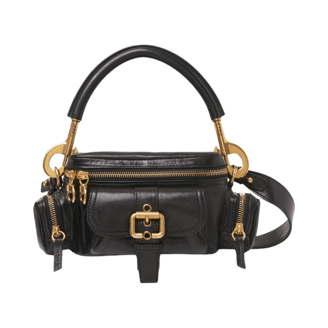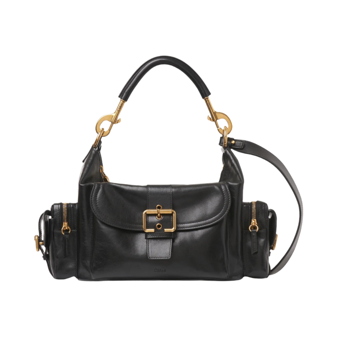 끌로에 미디움 샤이니 레더 카메라 백 블랙