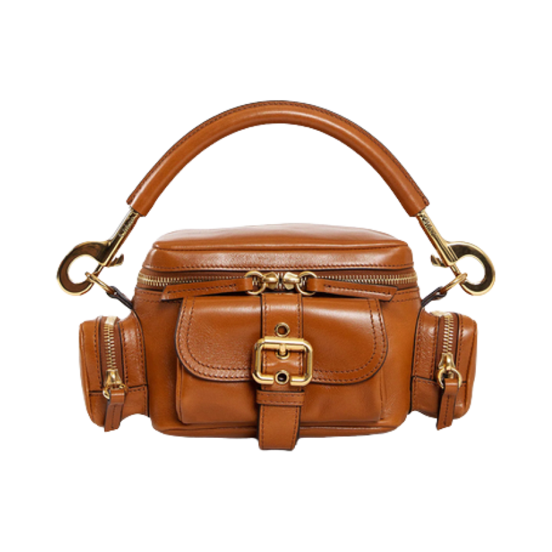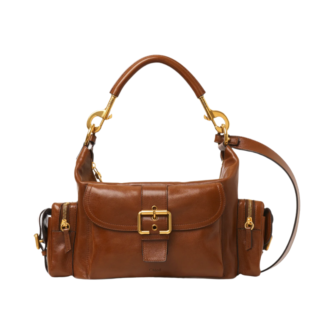 끌로에 샤이니 레더 카메라 백 클레이 브라운