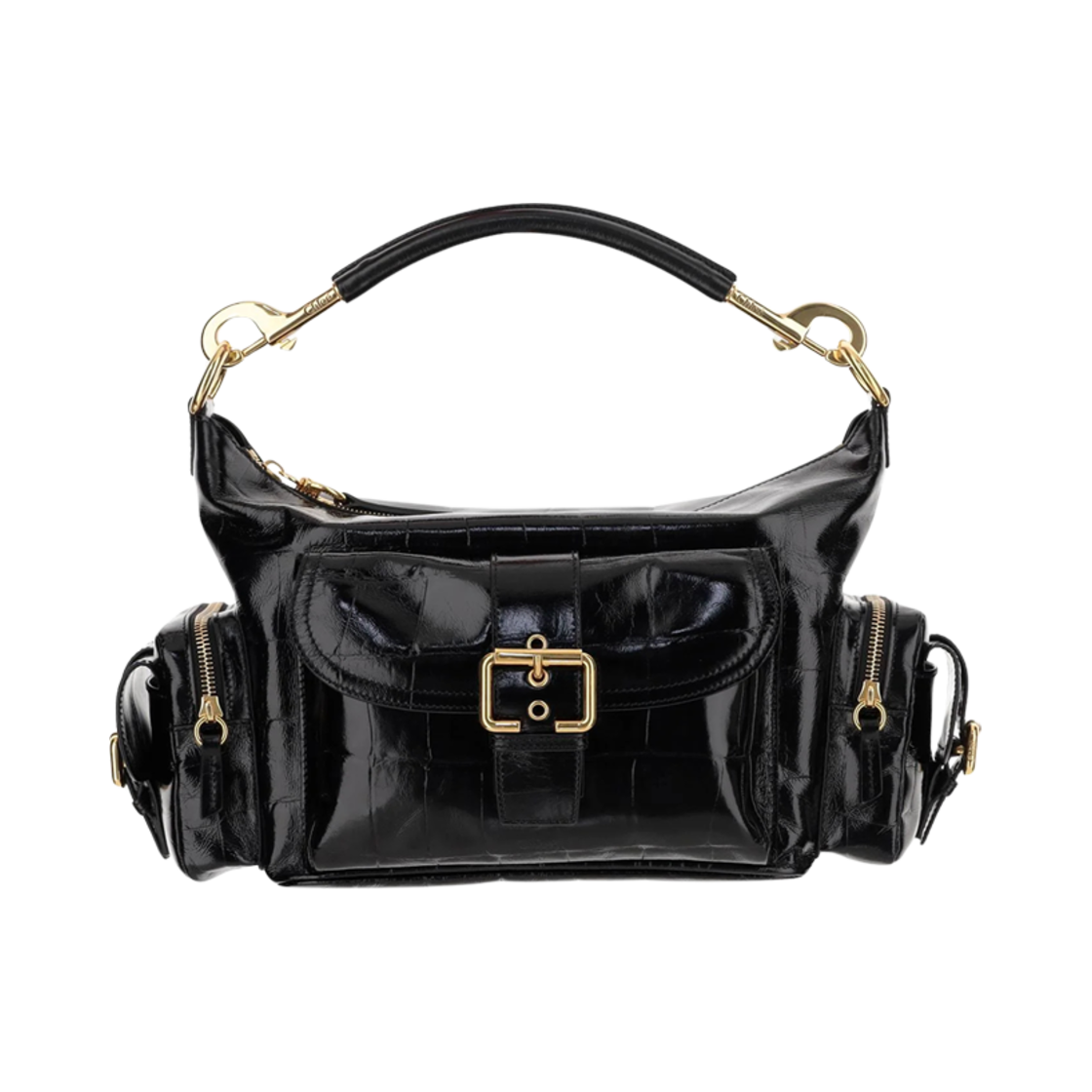 끌로에 샤이니 레더 라지 카메라 백 블랙