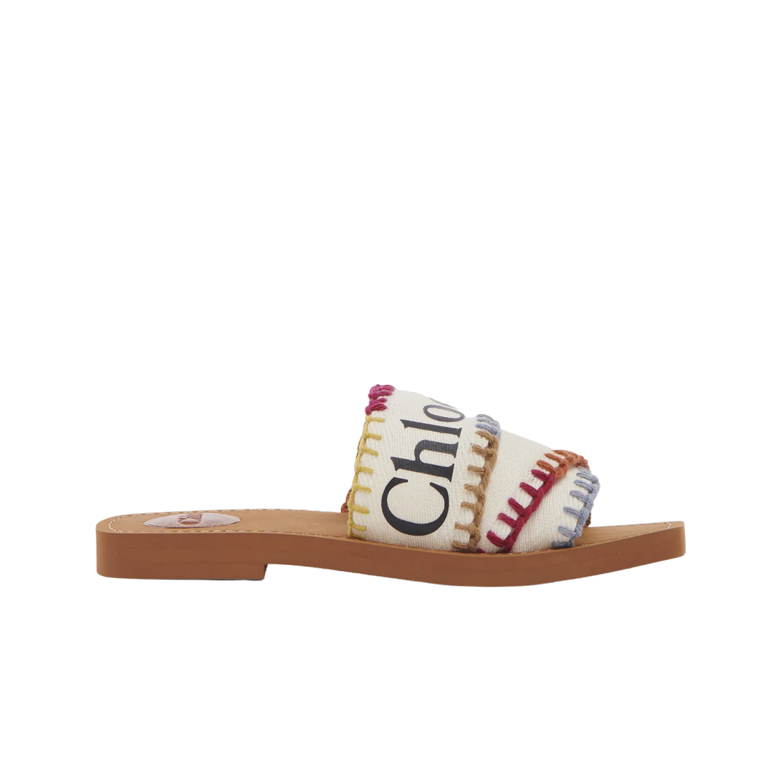 (W) 끌로에 우디 플랫 뮬 화이트 멀티컬러