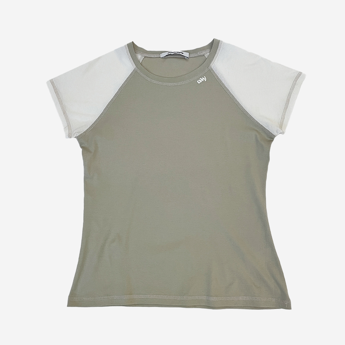 무센트 에센셜 로고 나그랑 롱슬리브 배색 롱슬리브 긴팔 티 그린 오트밀