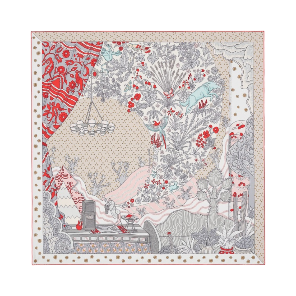 (W) 에르메스 쥬아브 드래곤 반다나 숄 140 오랑쥬 퀴 블랑 그리
