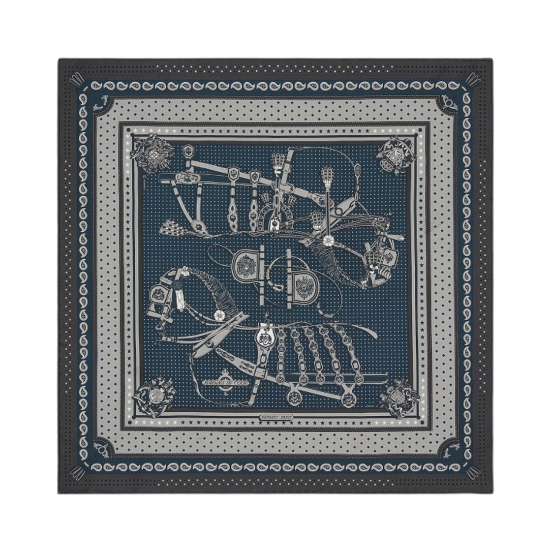 (W) 에르메스 파리 스테이션 반다나 55 블랑 그리 누아