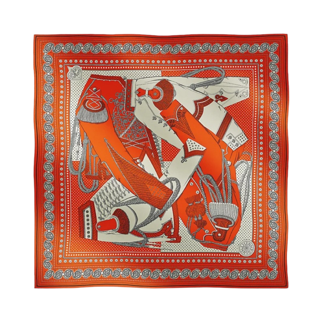 (W) 에르메스 쥬아브 드래곤 반다나 숄 140 오랑쥬 퀴 블랑 그리
