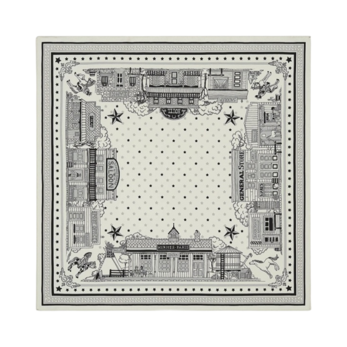(W) 에르메스 파리 스테이션 반다나 55 블랑 그리 누아