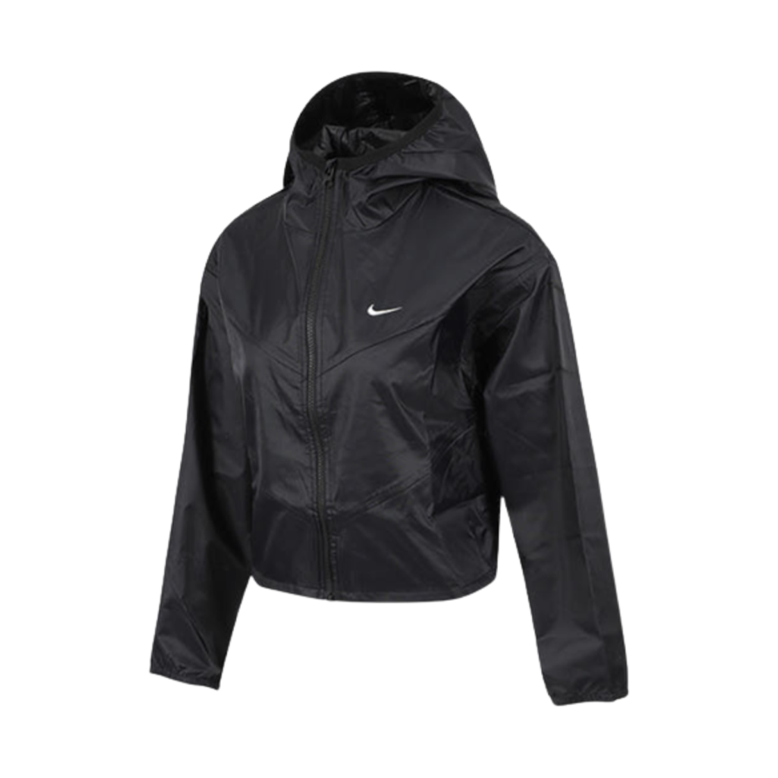 (W) 나이키 윈드러너 루즈 UV 우븐 풀 집 자켓 블랙 화이트 - 아시아