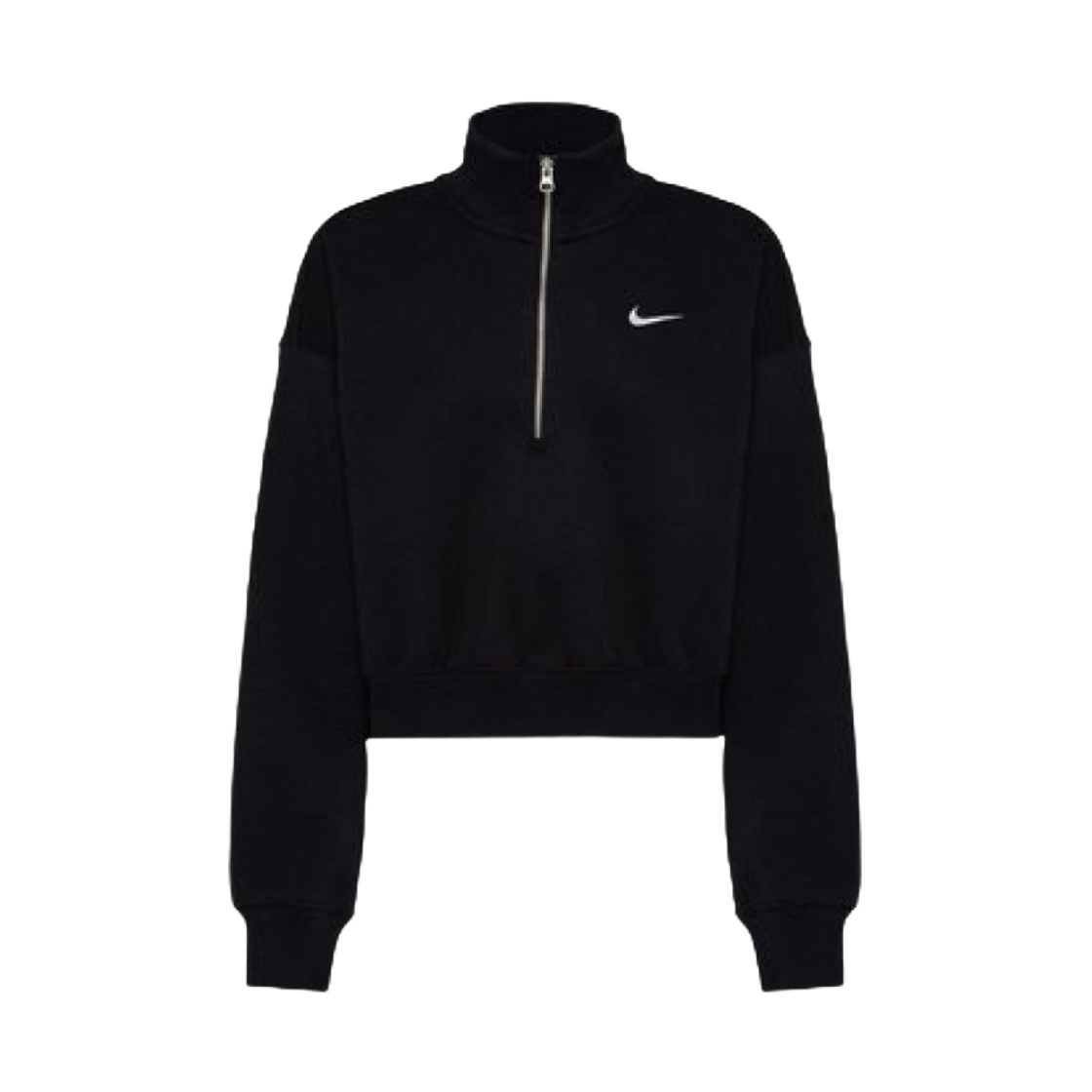 (W) 나이키 NSW 피닉스 플리스 하프 집 크롭 스웨트셔츠 블랙 - 아시아