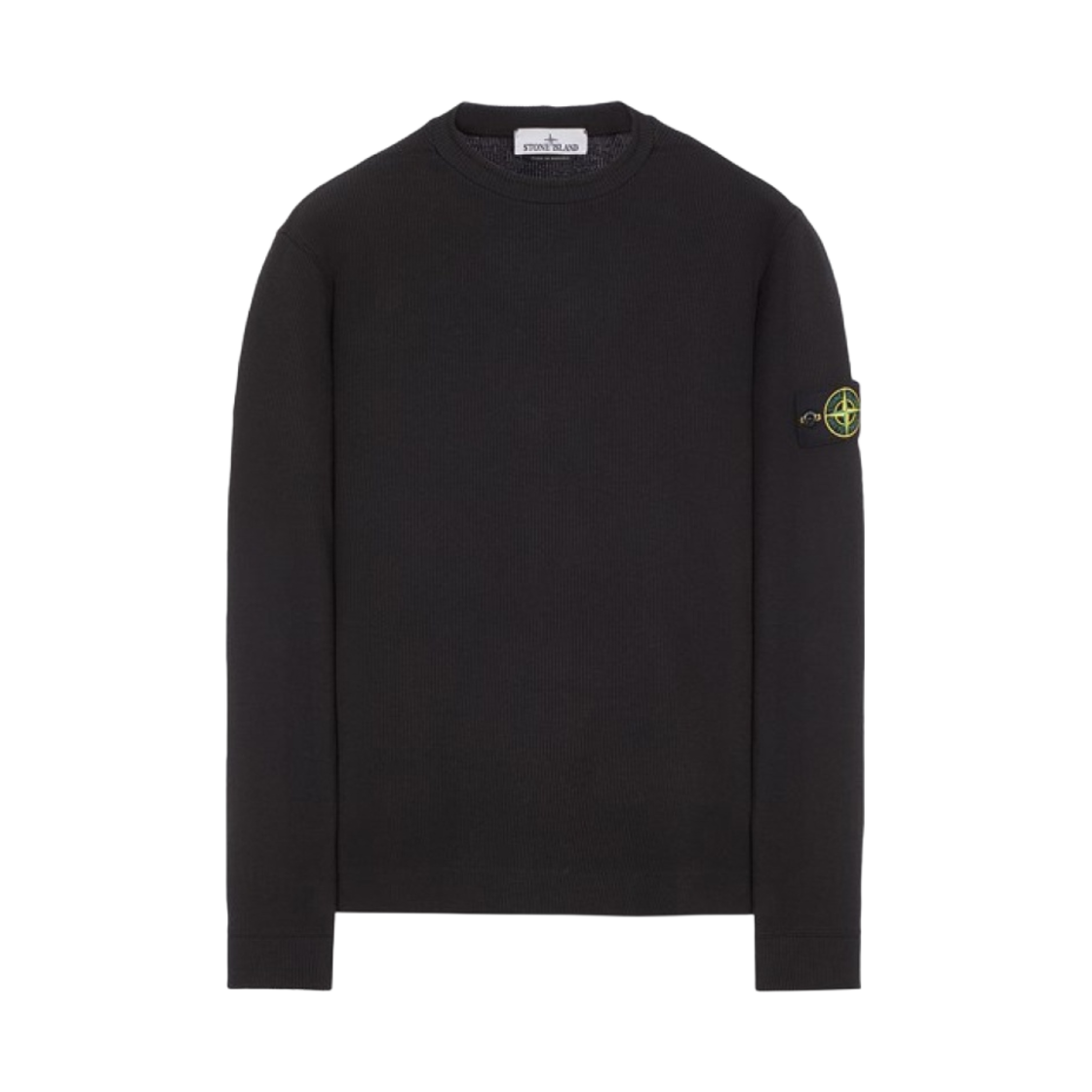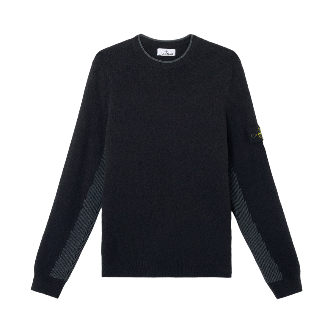 (키즈) 스톤 아일랜드 502Z1 스타킹 스티치 울 비스코스 나일론 앤 캐시미어 블렌드 크루넥 니트 블랙 - 23FW