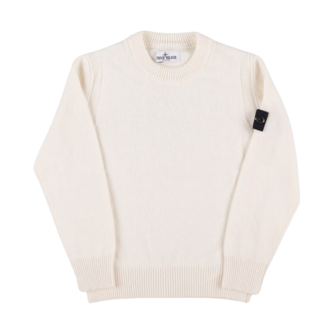 (키즈) 스톤 아일랜드 502Z1 스타킹 스티치 울 비스코스 나일론 앤 캐시미어 크루넥 니트 아이보리 - 23FW