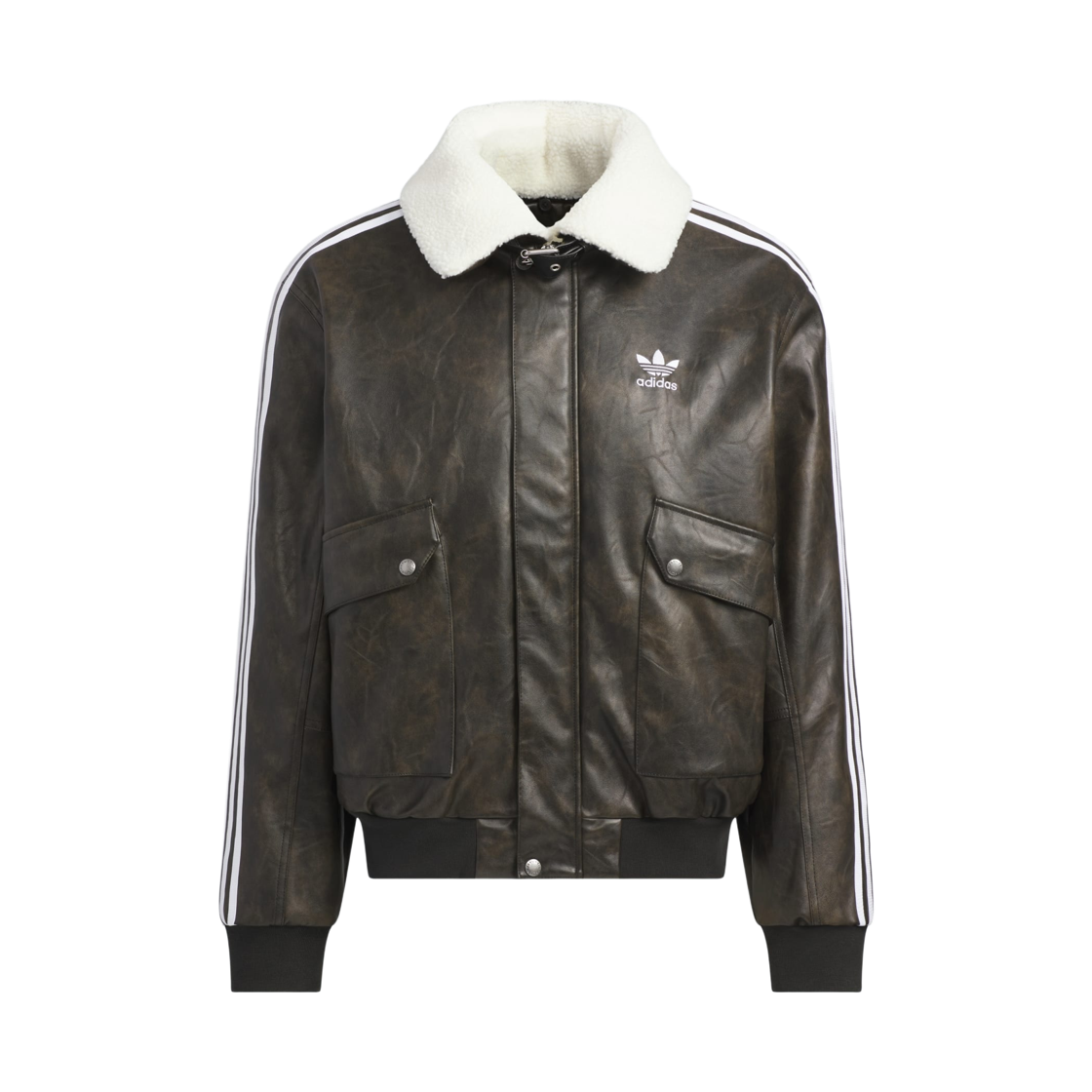 아디다스 PU 캐주얼 레더 자켓 브라운 - US 사이즈