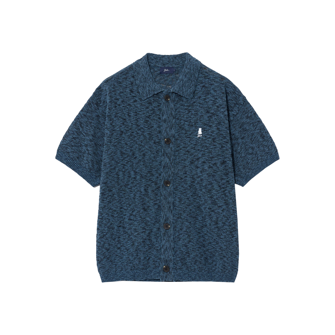 예일 헤더 숏슬리브 니트 셔츠_헤더 네이비