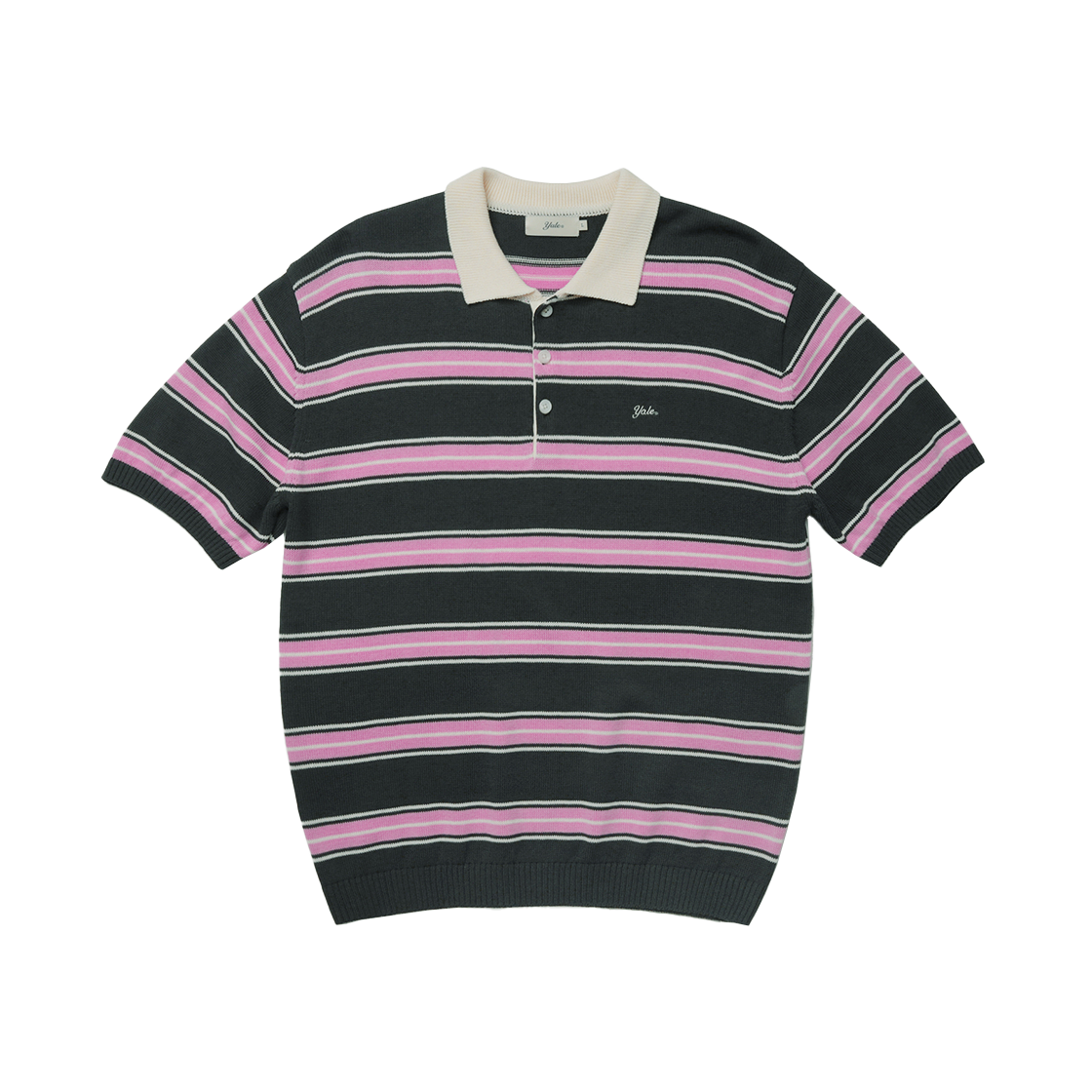 예일 멀티 스트라이프 카라 니트 반팔_차콜