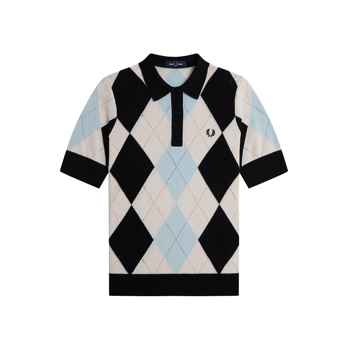 프레드 페리 우먼스 아가일 포인텔 니트 셔츠 실키 피치