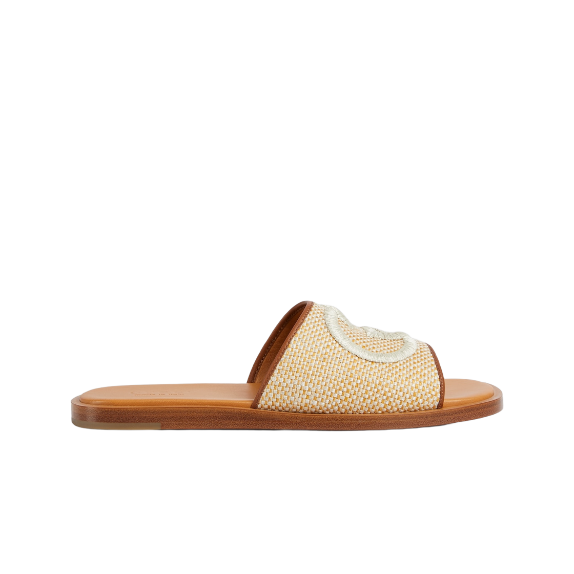 구찌 슬라이드 샌들 자수 내츄럴 우븐 패브릭