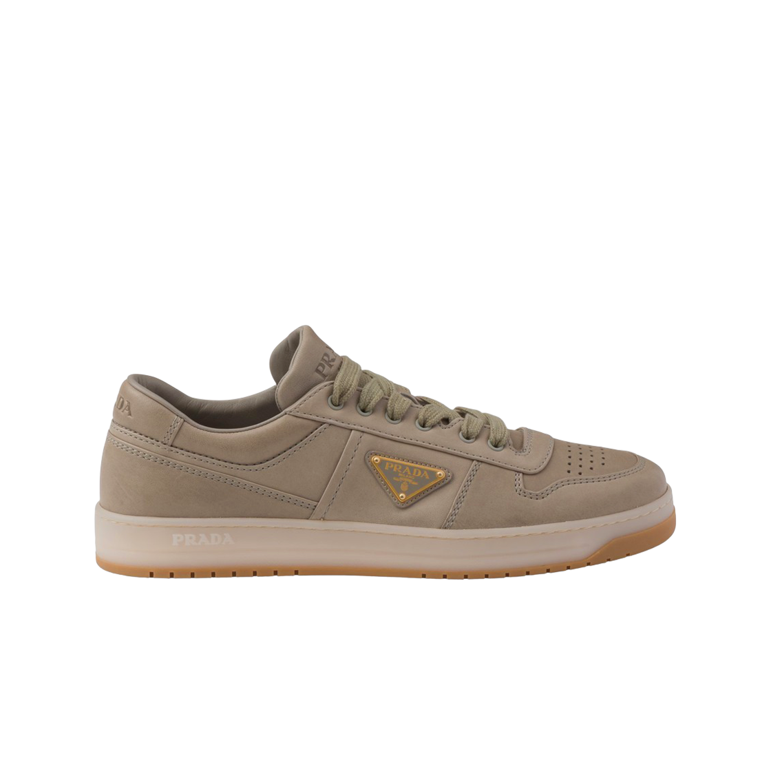 프라다 다운타운 델라베 스웨이드 및 리나일론 스니커즈 에크루 밀리터리