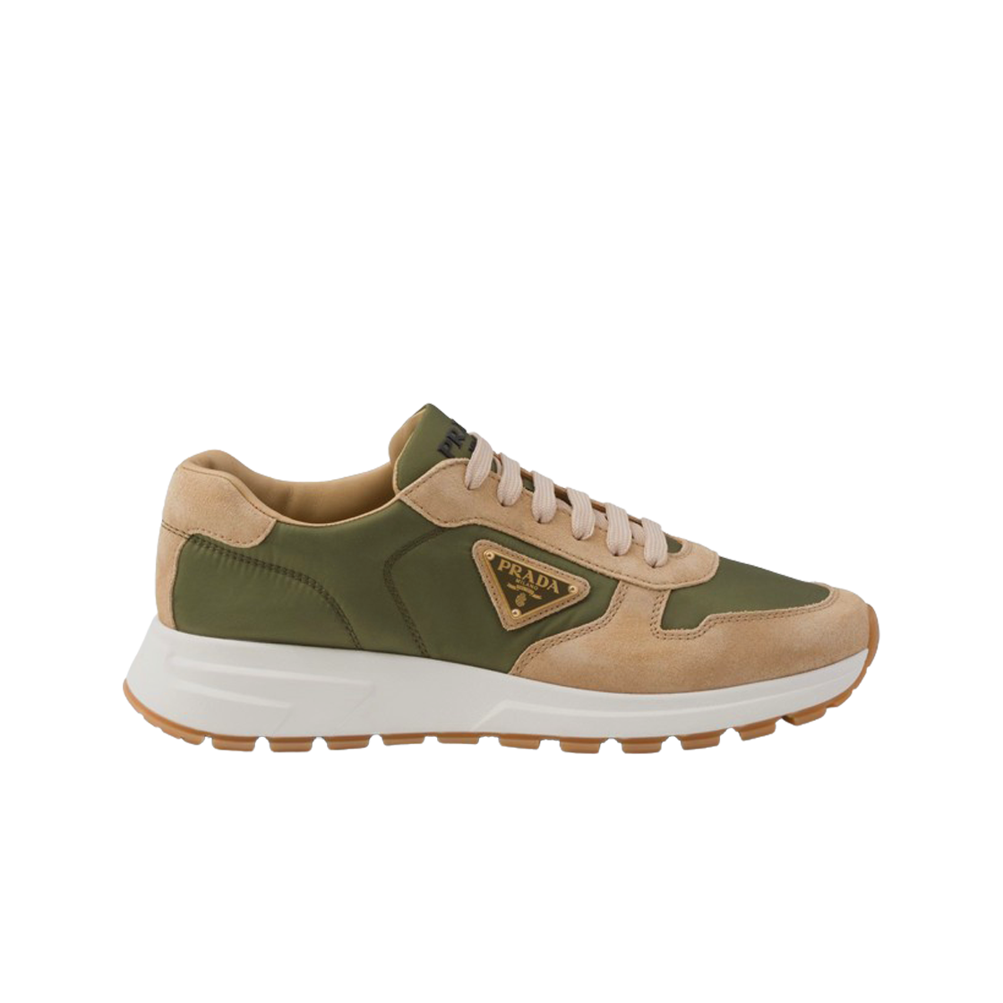 프라다 프랙스 01 델라베 스웨이드 및 리나일론 스니커즈 에크루 밀리터리