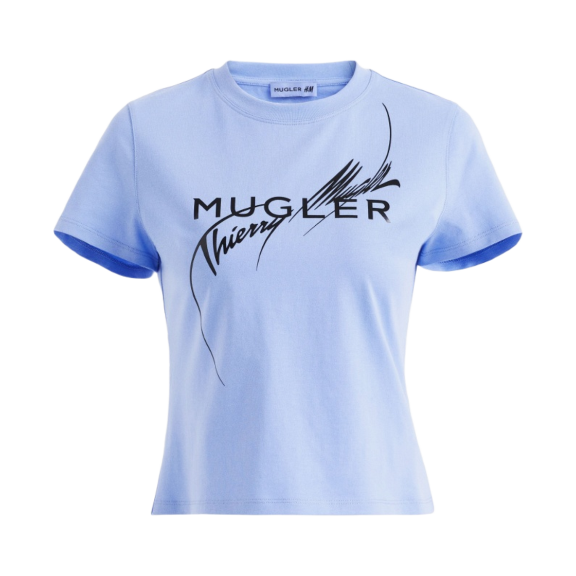 (W) 에이치앤엠 x 뮈글러 프린티드 피티드 티셔츠 블루