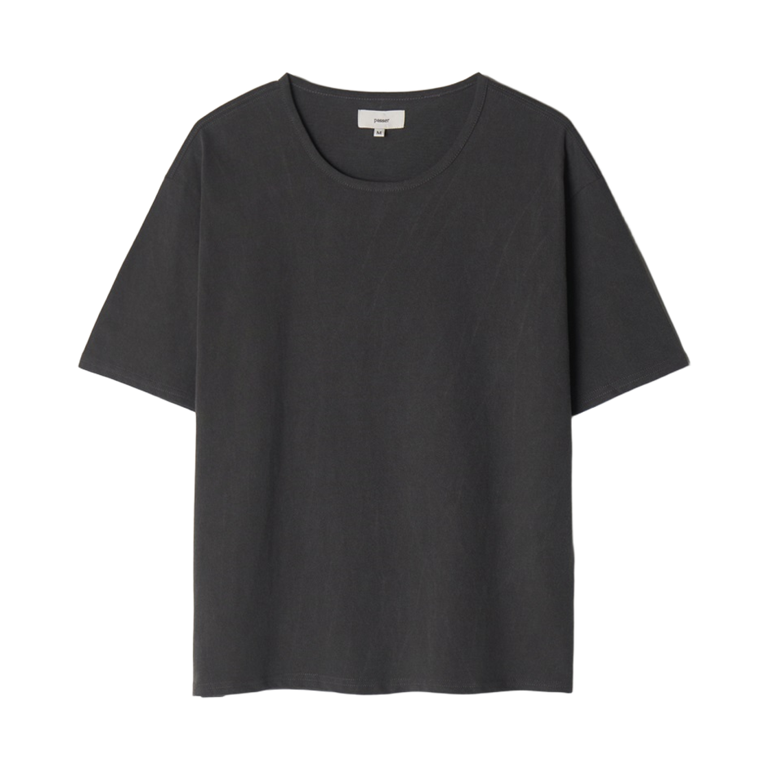 본바트 넥크리스 그래픽 크롭 반팔티 차콜