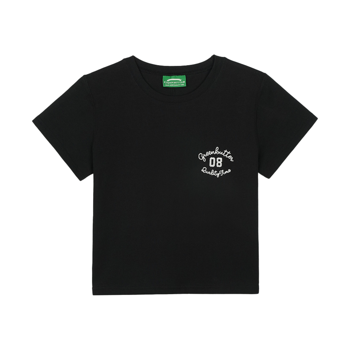 그린버터 크롭 컬시브 티 블랙