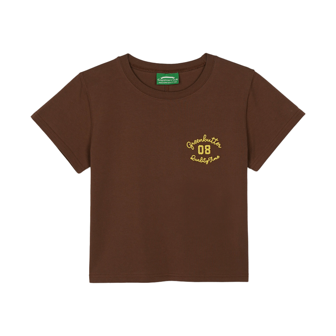 그린버터 크롭 컬시브 티 브라운
