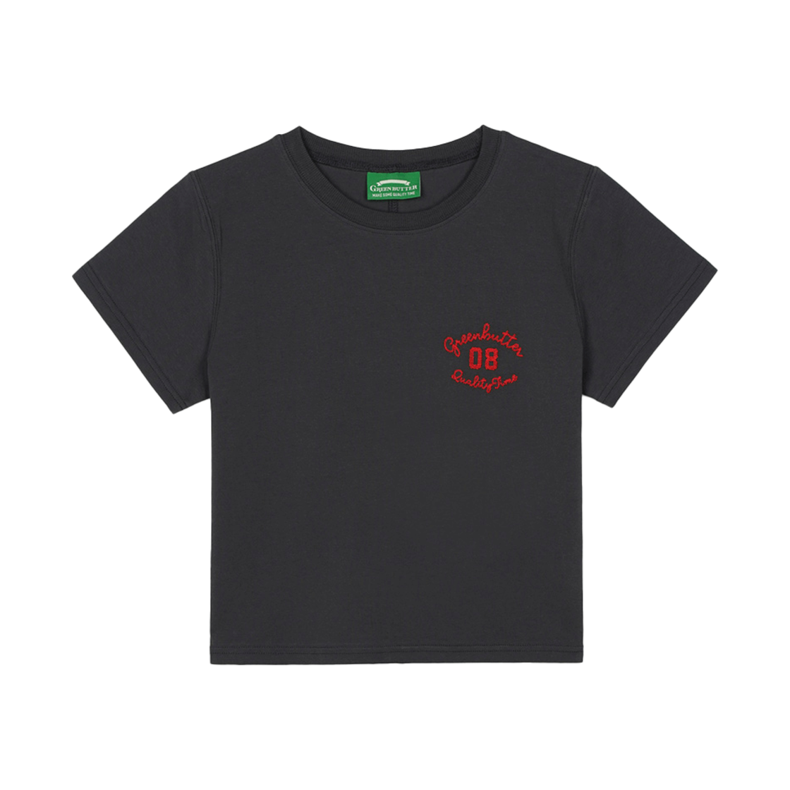 그린버터 크롭 컬시브 티 차콜