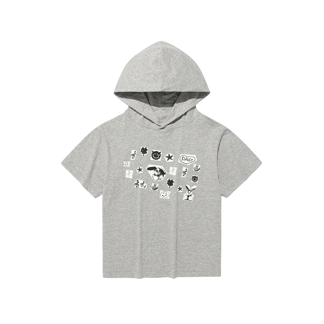 이스트쿤스트 스티커 후드 크롭티 그레이