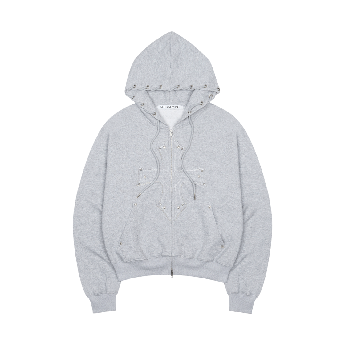 낫노잉 아일렛 크로스 후드 집업 멜란지 그레이