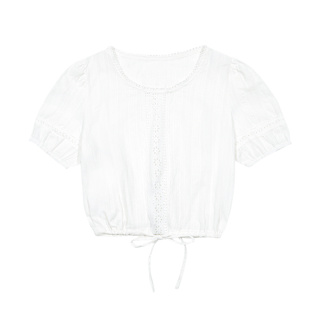 쿠키시 레이스 퍼프 반팔 블라우스 화이트