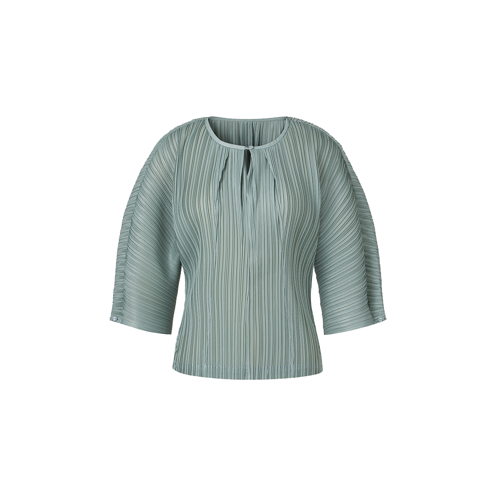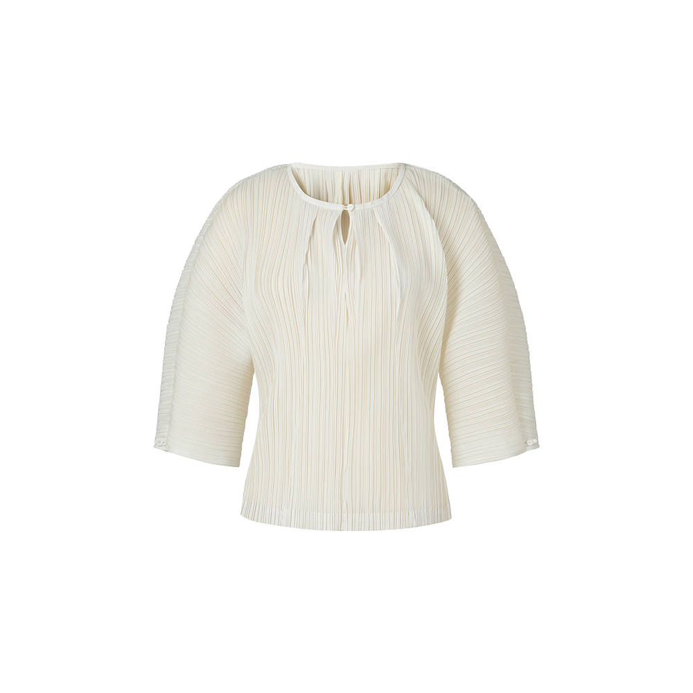 몽플리쎄 여성 턱 포인트 7부 소매 플리츠 블라우스 아이보리