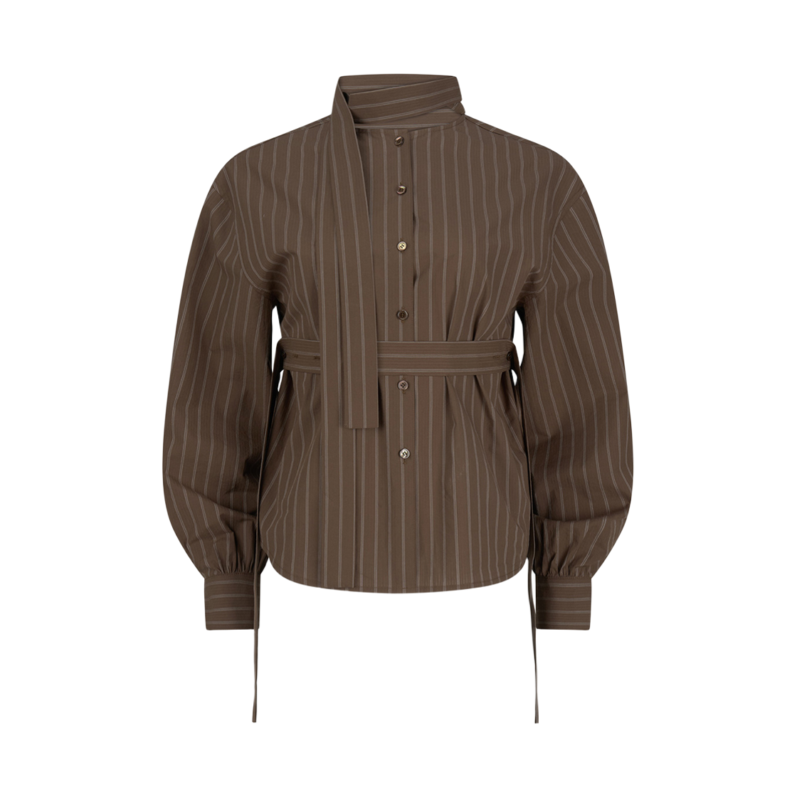 (W) 노이스 스트라이프 스카프 블라우스 브라운