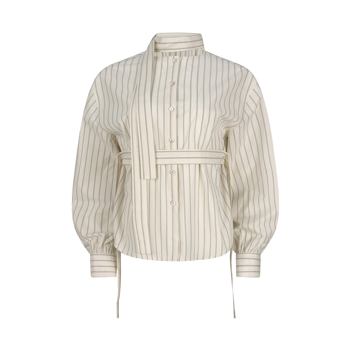 (W) 노이스 스트라이프 스카프 블라우스 아이보리
