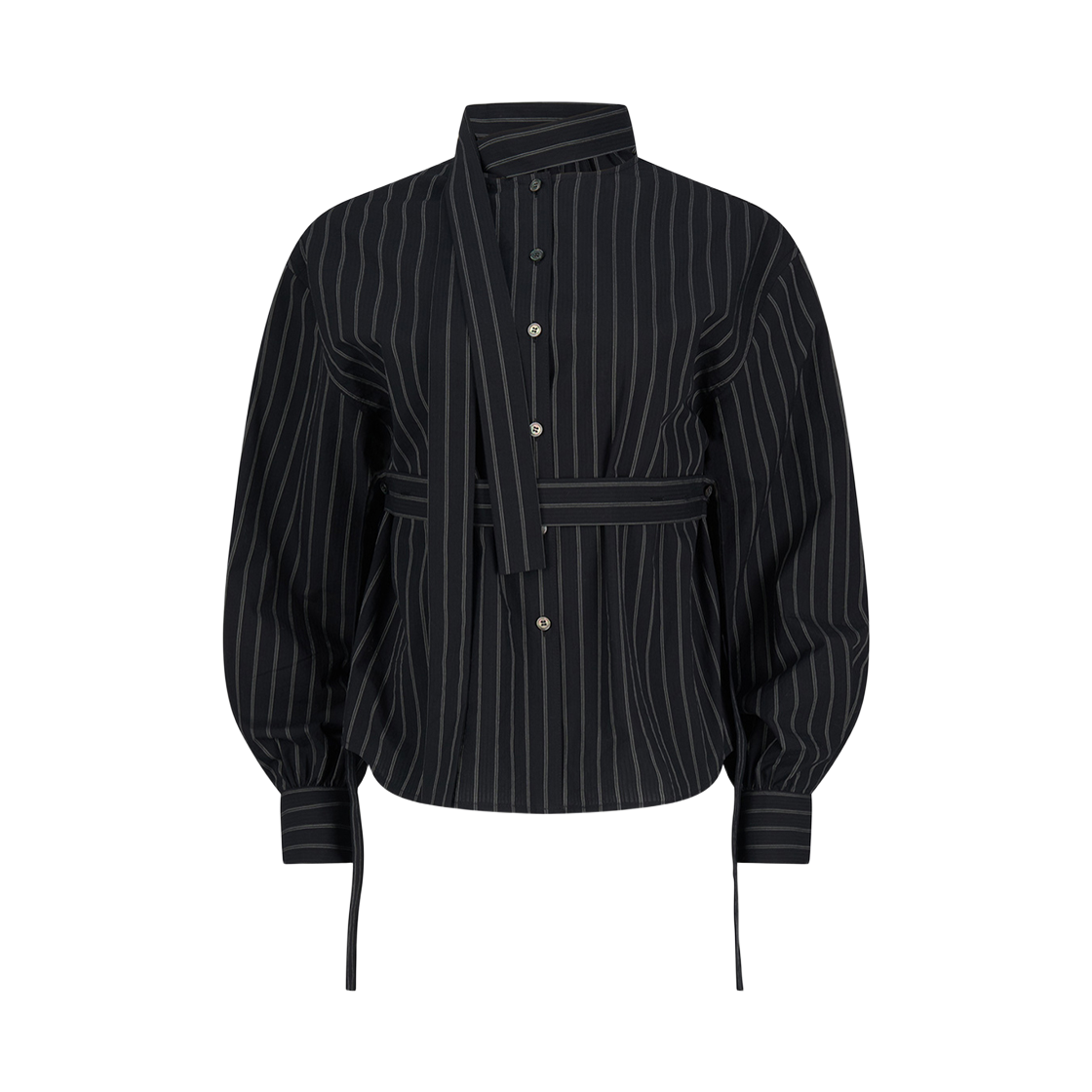 (W) 노이스 스트라이프 스카프 블라우스 블랙