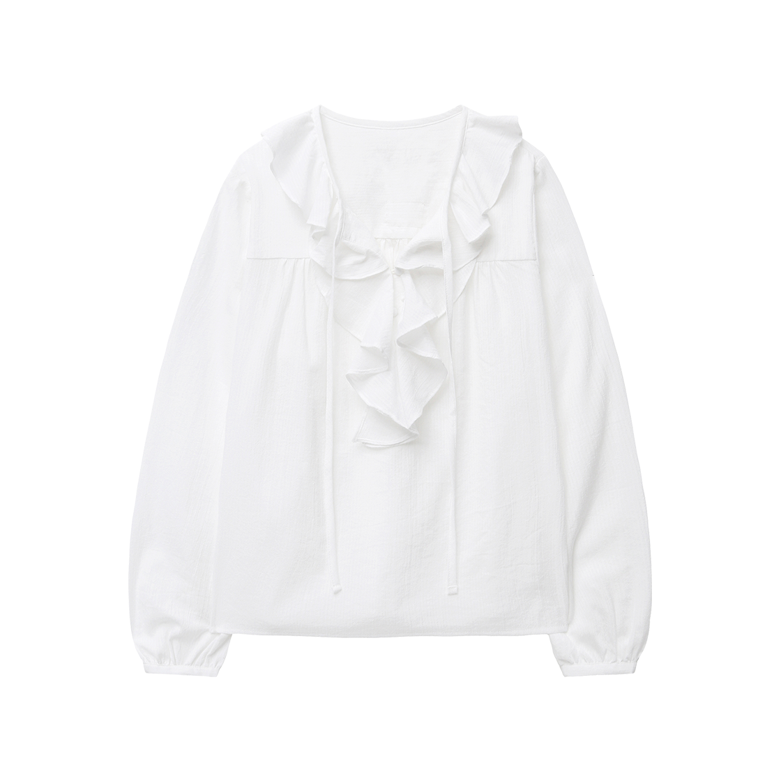 아수라 플라워 쉬폰 러플 블라우스 화이트