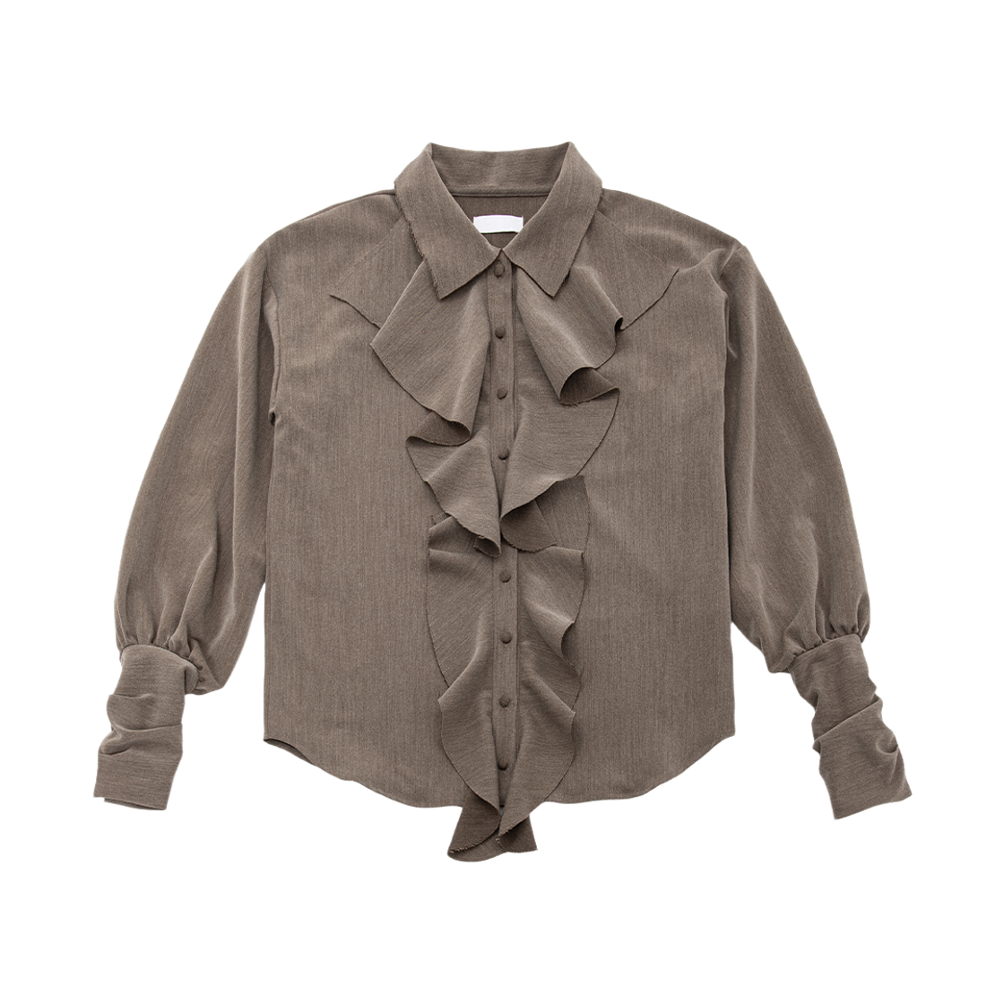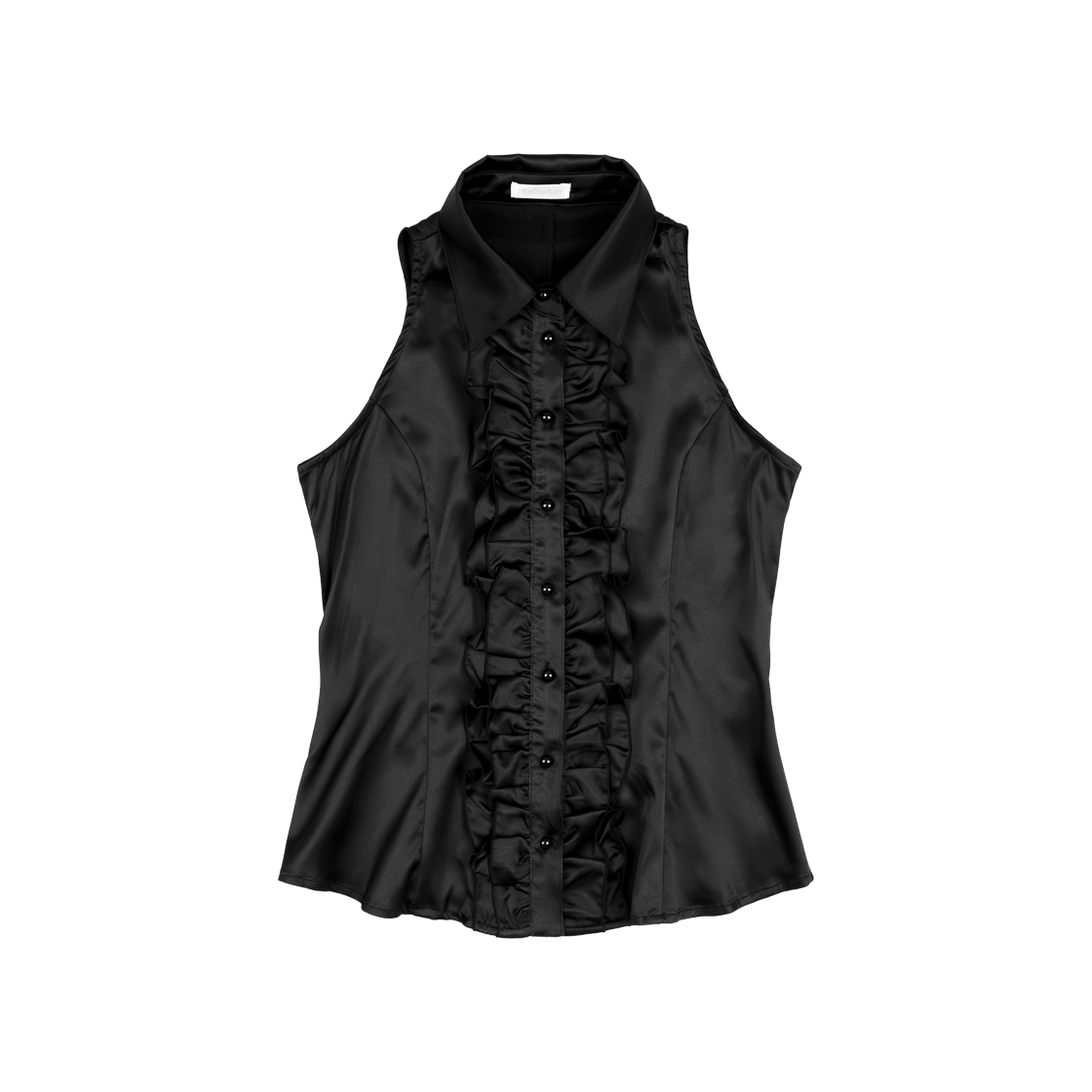 에테르 생츄어리 실크 러플 블라우스 블랙