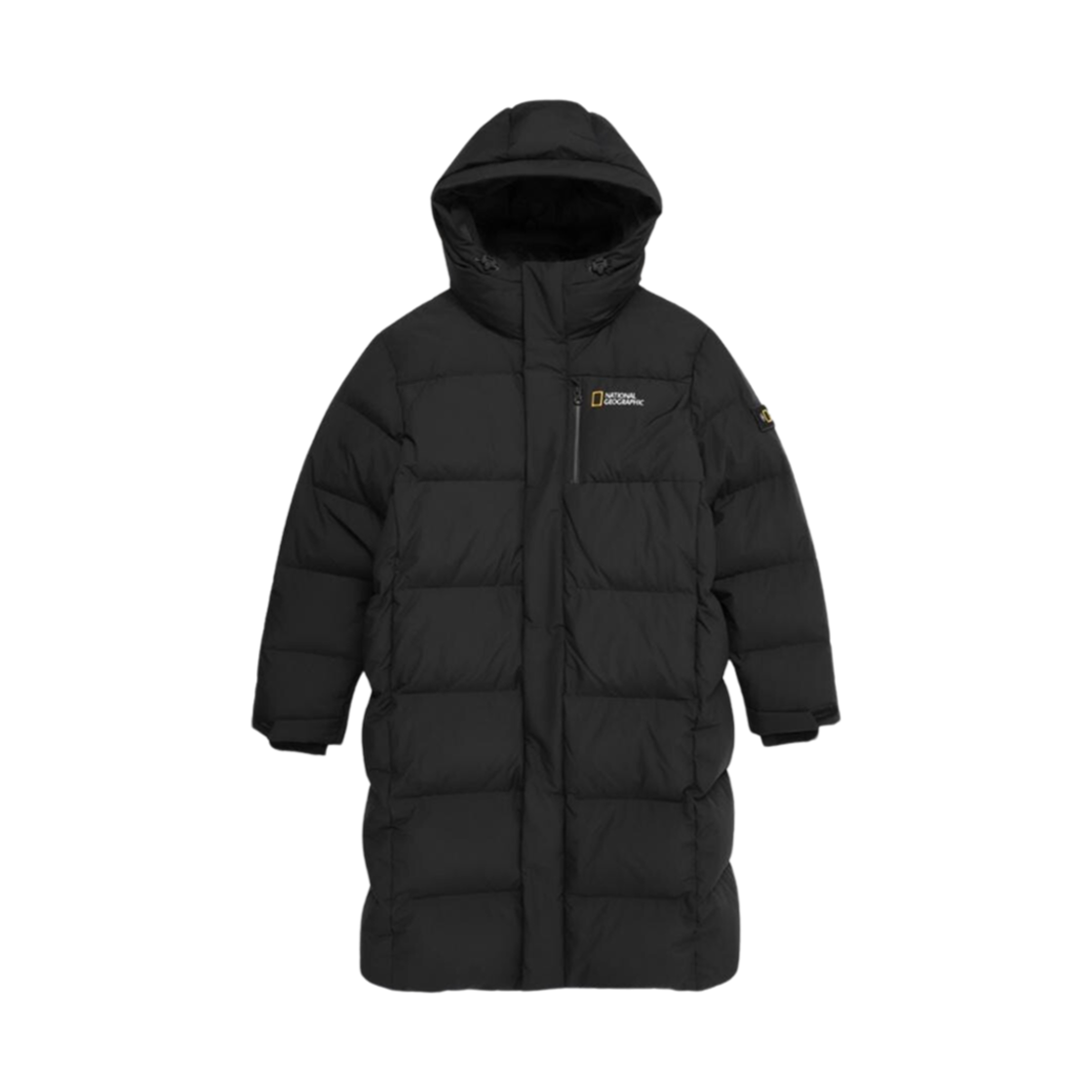 내셔널 지오그래픽 카이만 프로 롱 구스 다운 점퍼 빅 로고 블랙