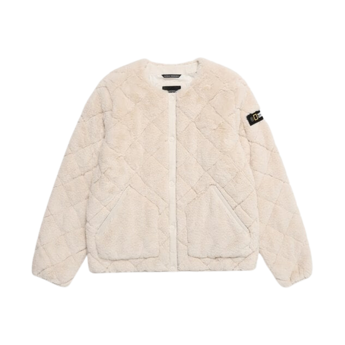 (W) 내셔널 지오그래픽 디퍼 에코 퍼 퀼팅 U 넥 자켓 라이트 베이지