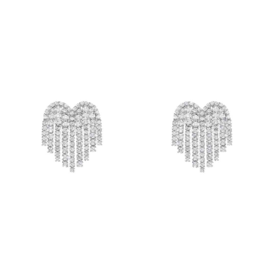 넘버링 크리스탈 드롭 하트 이어링 실버