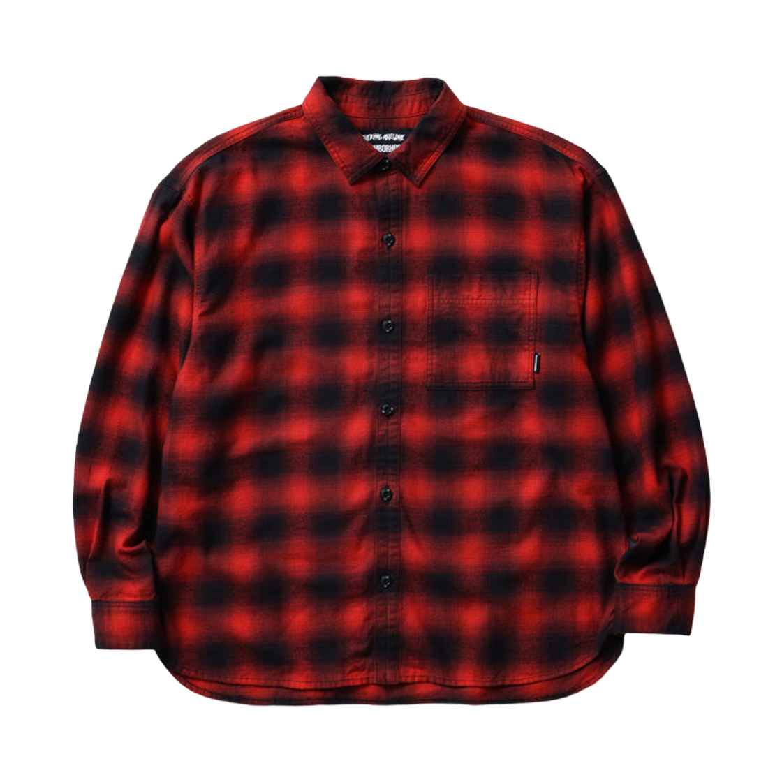 네이버후드 x 퍼킹 어썸 옴브레 롱슬리브 체크 셔츠 레드