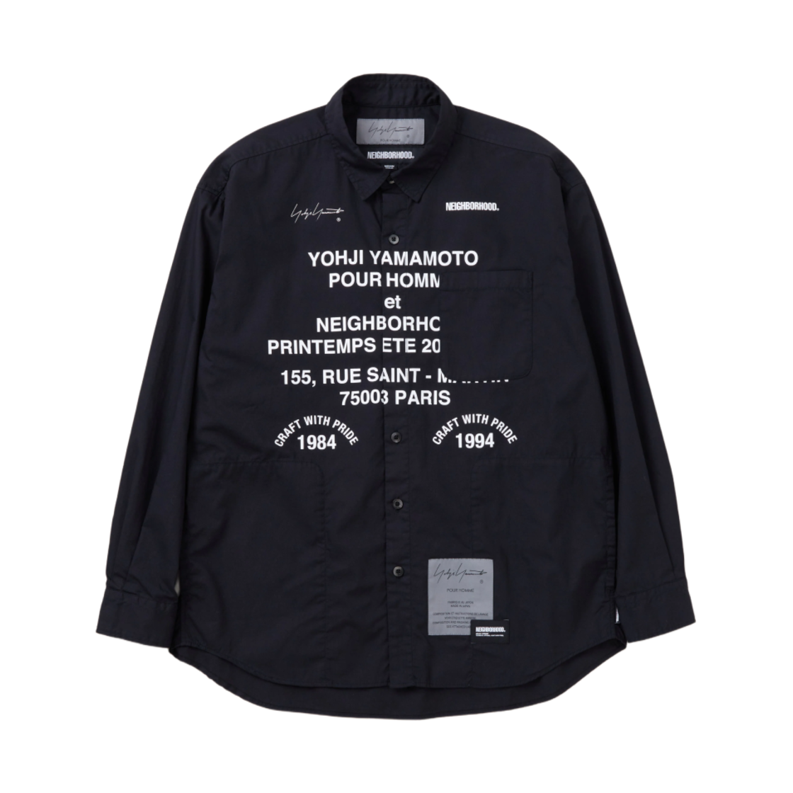 네이버후드 x 요지 야마모토 프린트 셔츠 롱슬리브 블랙