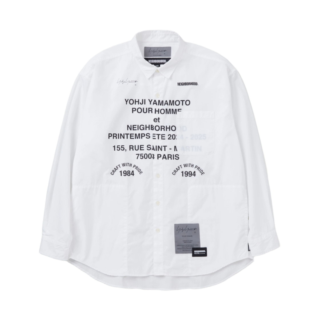 네이버후드 x 요지 야마모토 프린트 셔츠 롱슬리브 화이트