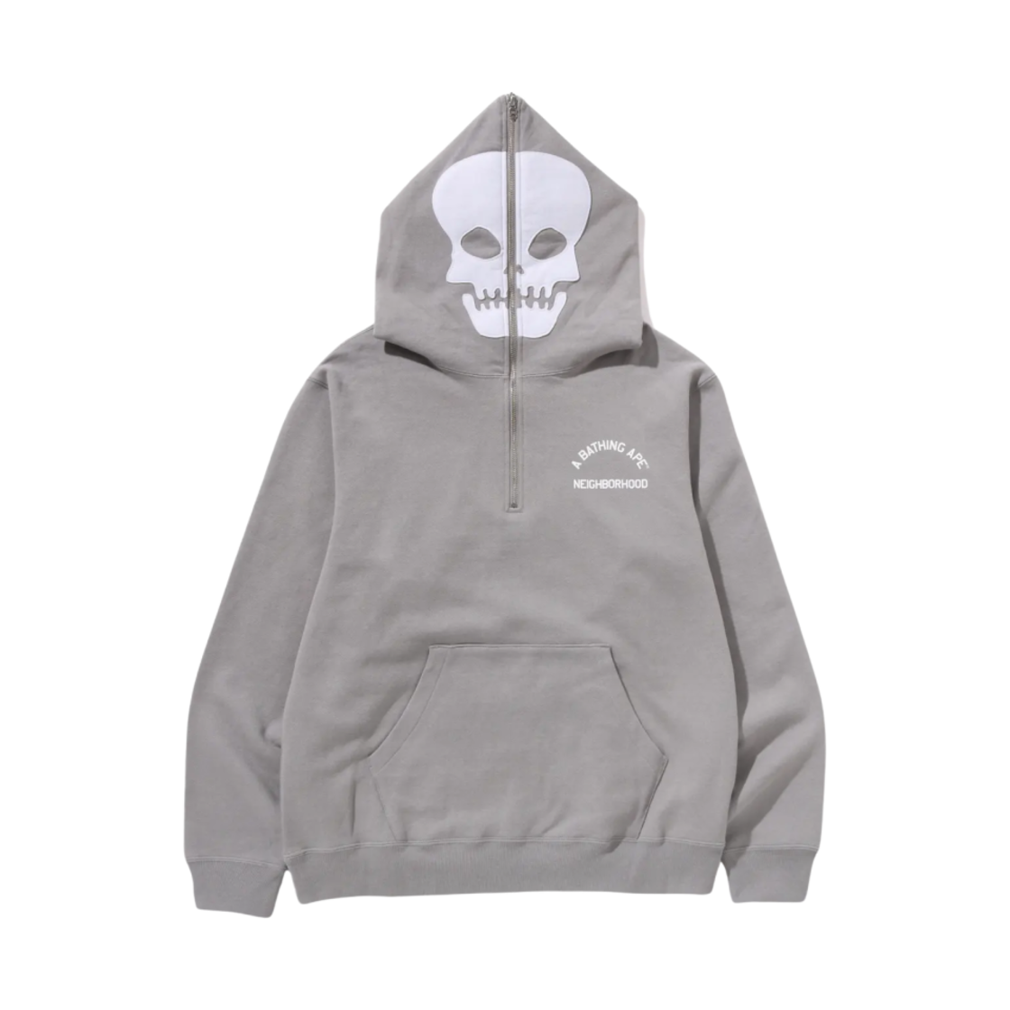 베이프 x 네이버후드 투 페이스 하프 집 풀오버 후드 그레이