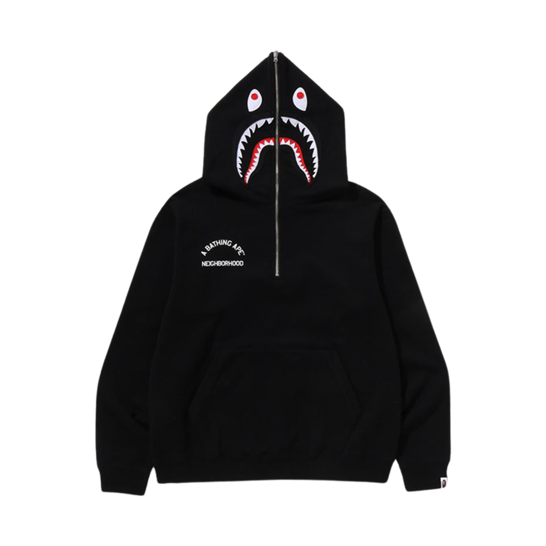 베이프 x 네이버후드 투 페이스 하프 집 풀오버 후드 블랙