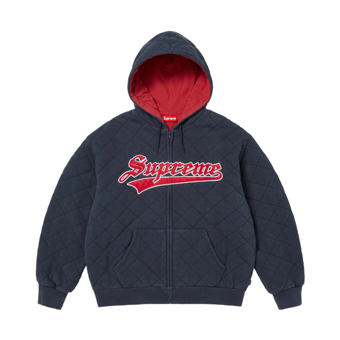 슈프림 퀼티드 집업 후드 스웨트셔츠 네이비 - 25FW
