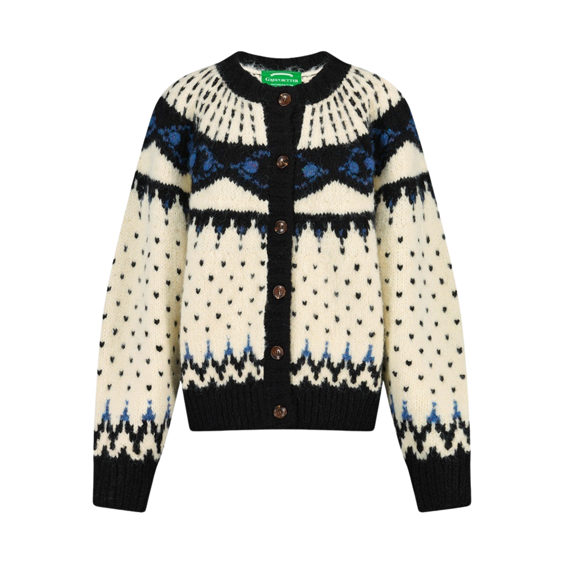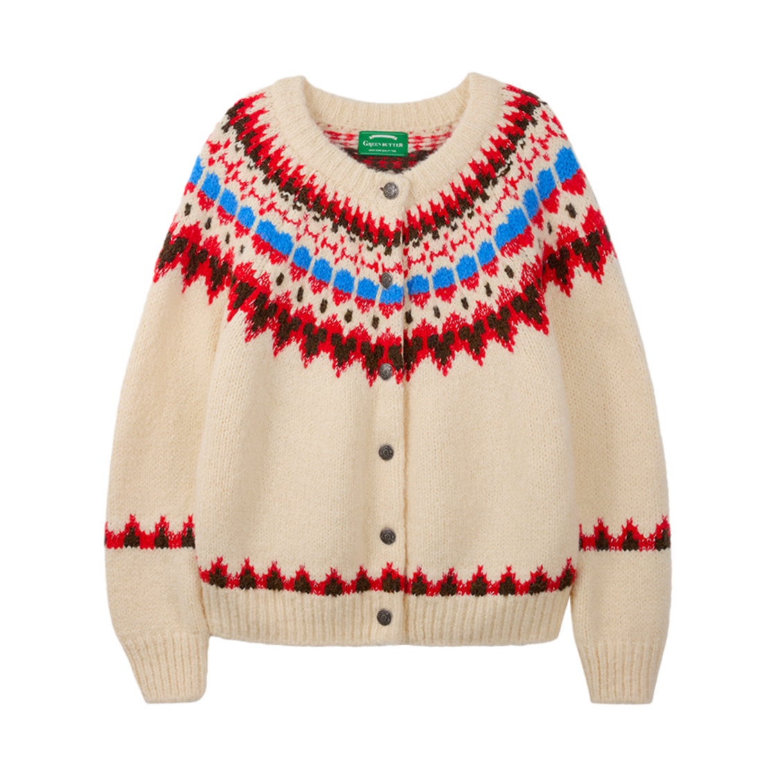 그린버터 우먼 캔디 볼 알파카 노르딕 가디건 크림