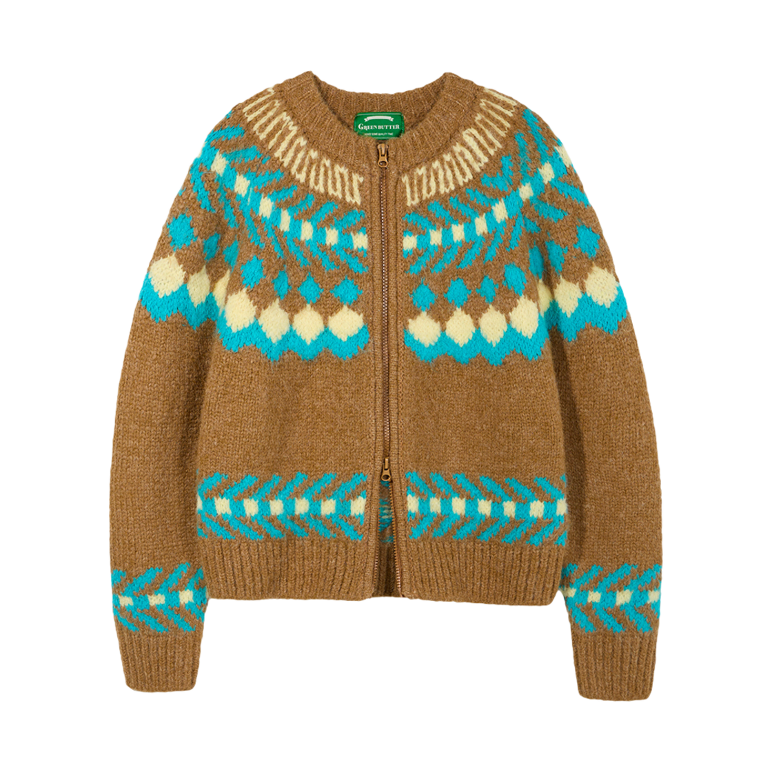 그린버터 시어링 노르딕 집 가디건 브라운