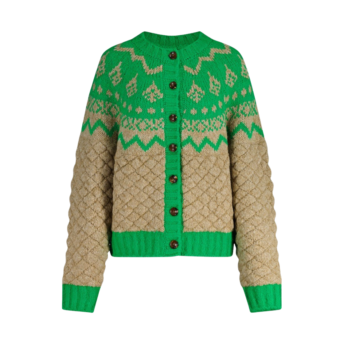 그린버터 참 노르딕 케이블 가디건 라이트 베이지