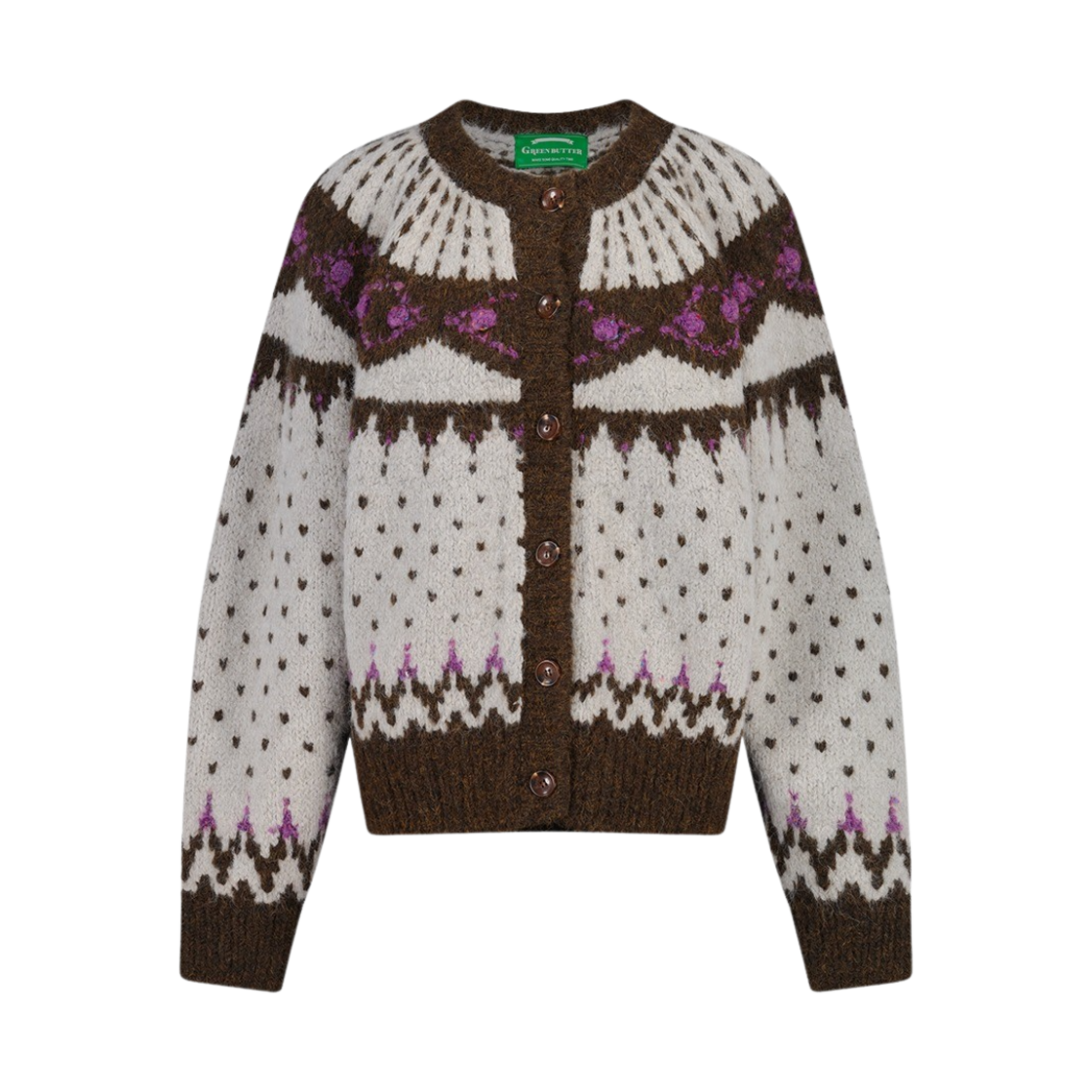 그린버터 우먼 캔디 볼 알파카 노르딕 가디건 브라운