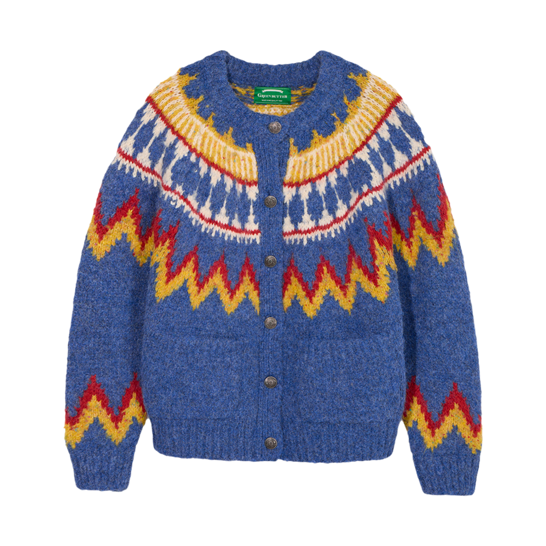 그린버터 알파카 노르딕 카디건 코발트