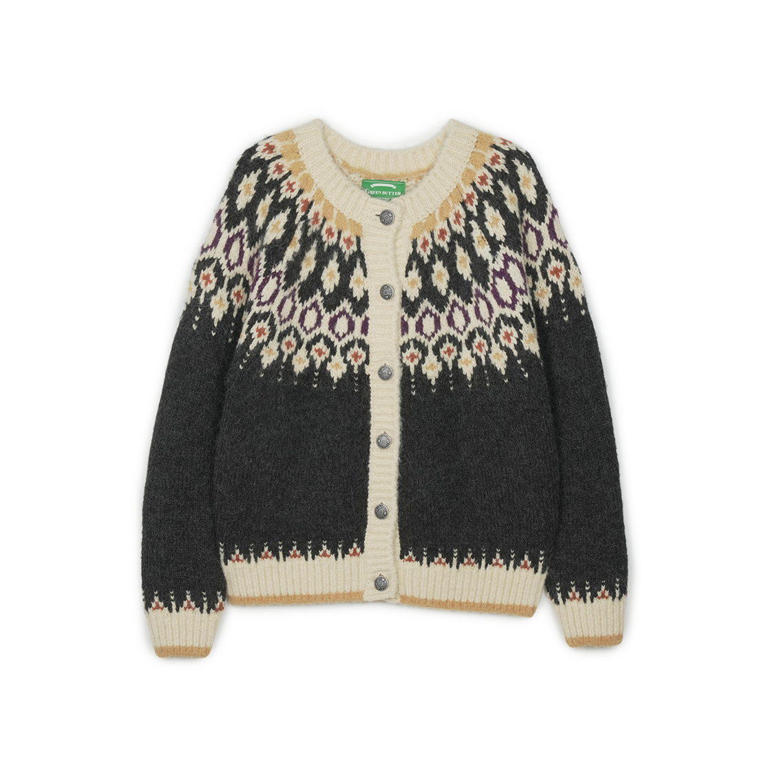 그린버터 알파카 노르딕 카디건 차콜