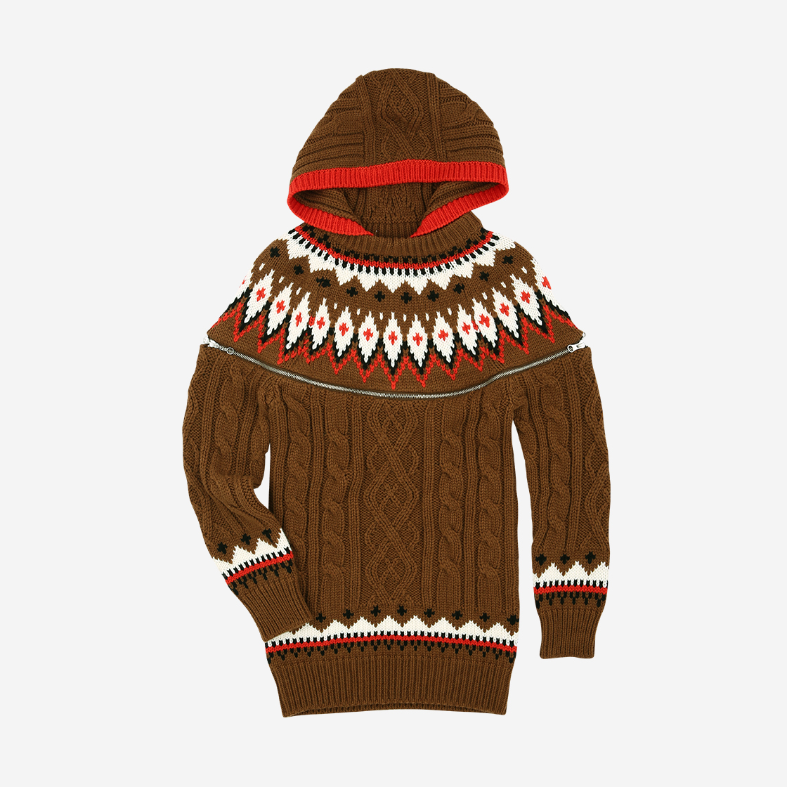 피지컬 디파트먼트 베어 투웨이 노르딕 니트 후드집업 브라운